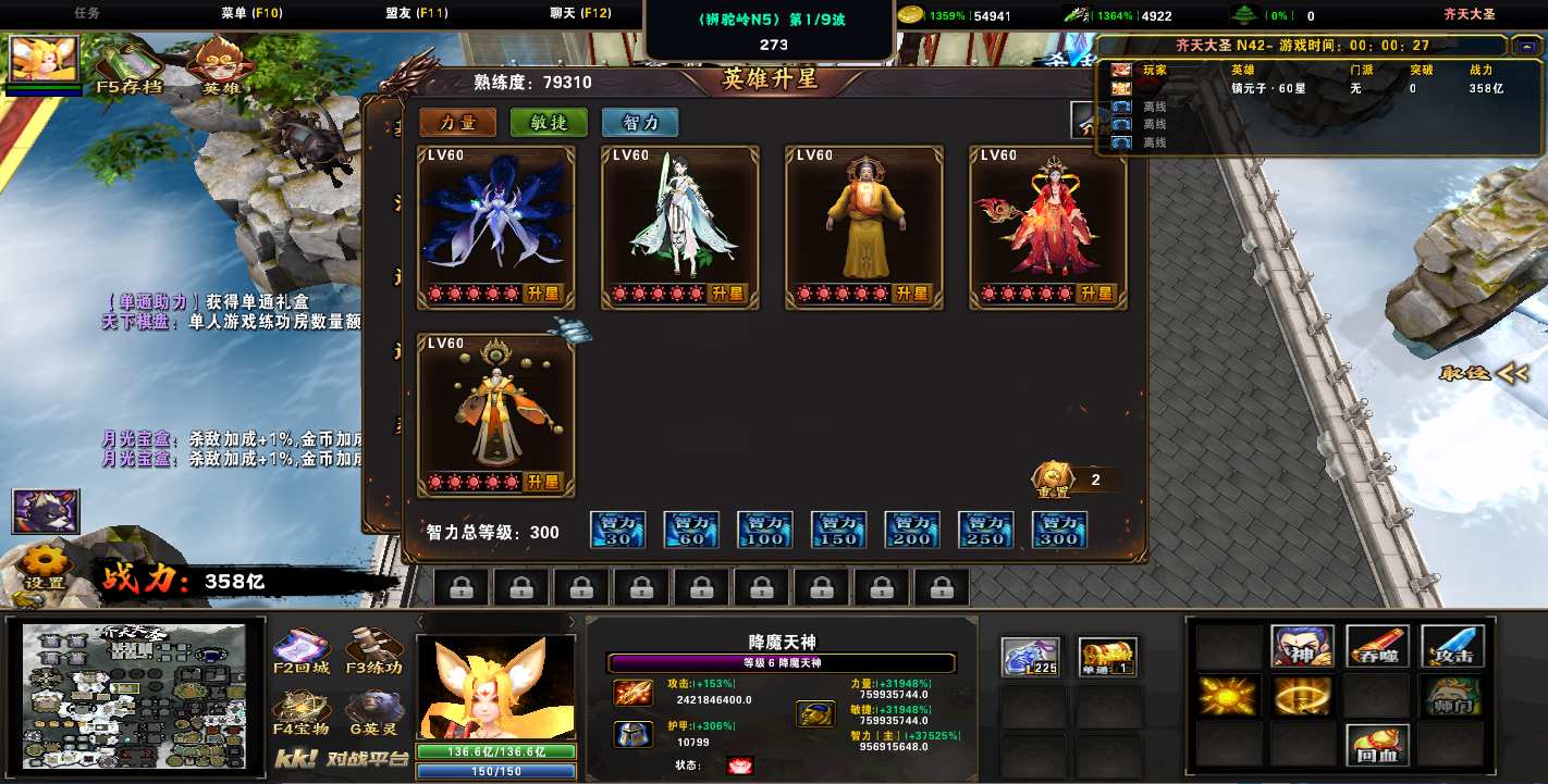 地图名字:齐天大圣1.0.298地图下载+全商城特权+全存档+隐藏英雄+无CD+指令功能