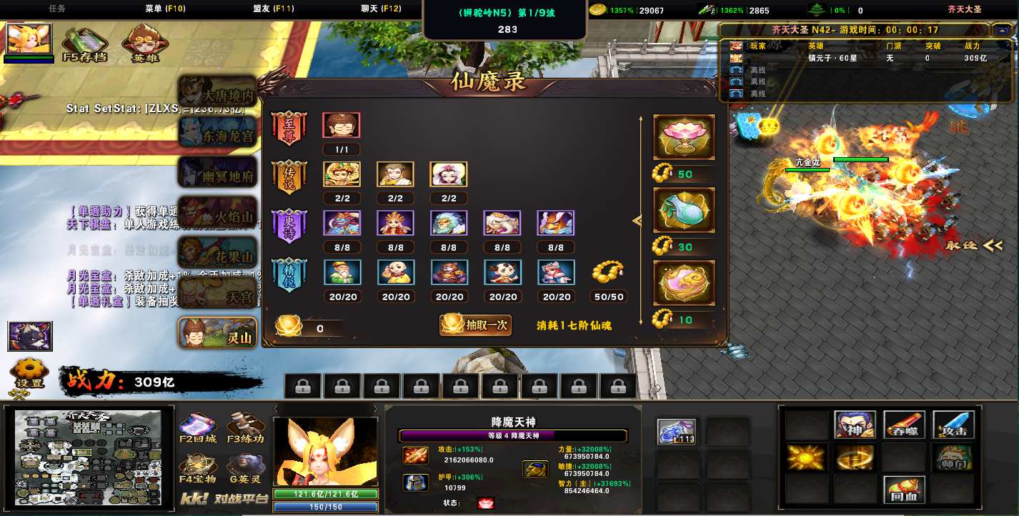 齐天大圣1.0.299地图下载+全商城特权+全存档+隐藏英雄+无CD+指令功能: