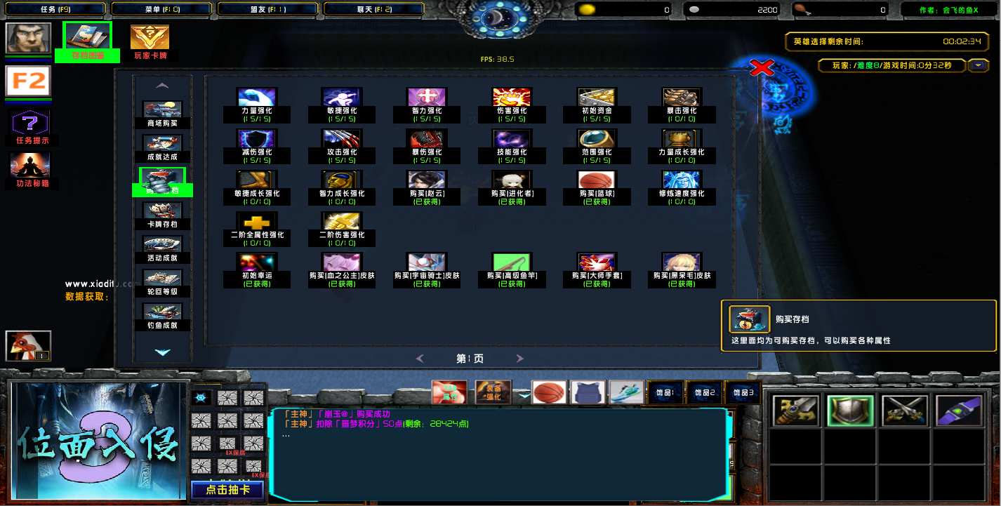 地图名字:位面入侵3 1.2.8地图下载+全商城特权+全存档+隐藏英雄+无CD+指令功能