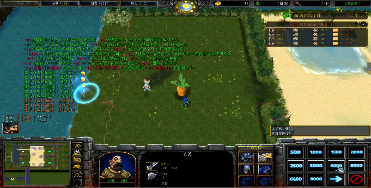 地图名字:拔萝卜生存1.0.29地图下载+全商城特权+全存档+无CD+指令功能