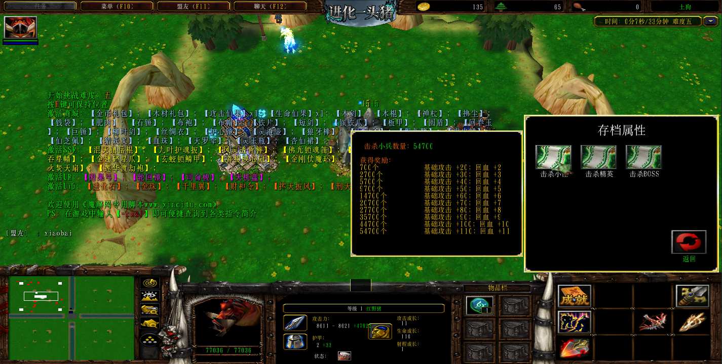 地图名字:进化一头猪3 1.0.5地图下载+全商城特权+全存档+无CD+指令功能