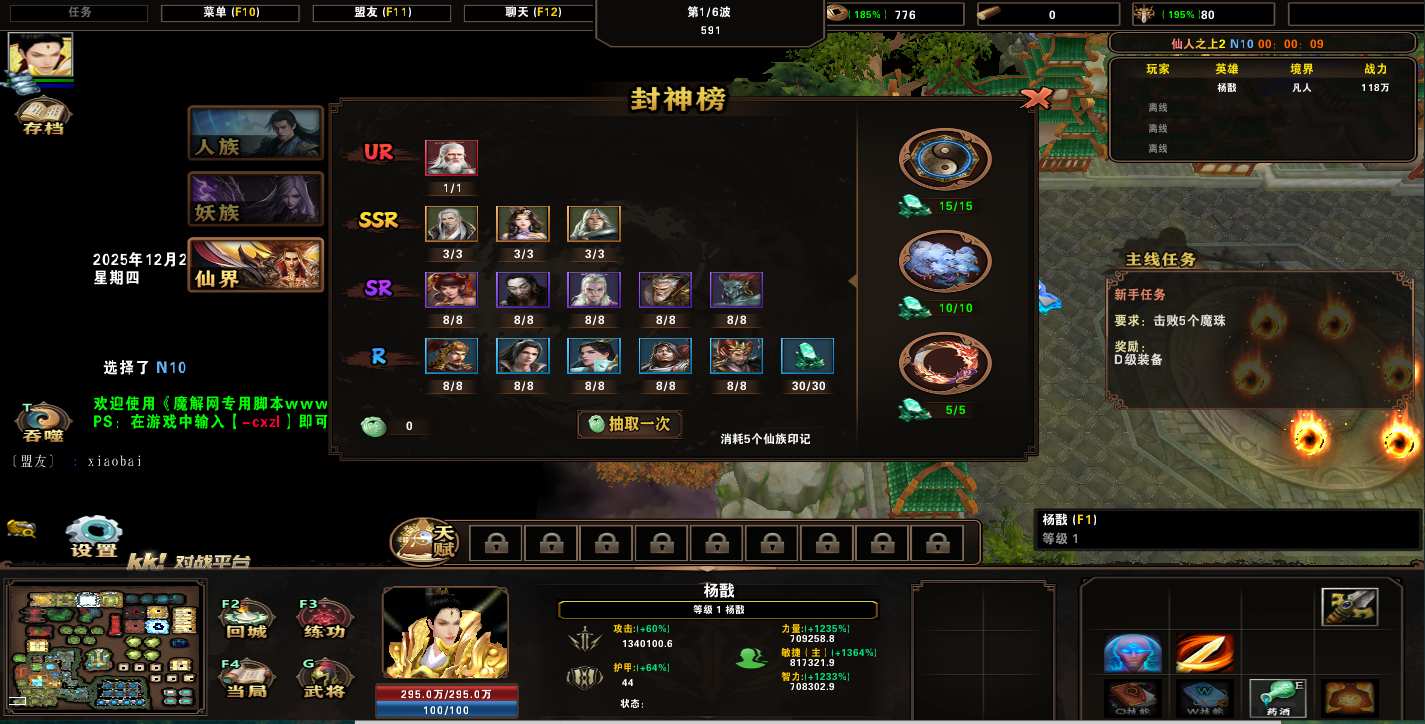 地图名字:仙人之上2 1.0.43地图下载+全商城特权+全存档+隐藏英雄+无CD+指令功能