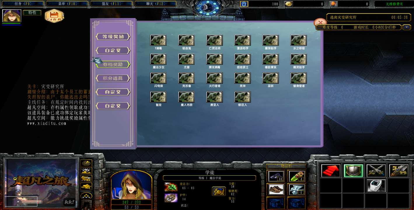地图名字:超凡之旅1.0.42地图下载+全商城特权+全存档+隐藏英雄+无CD+指令功能