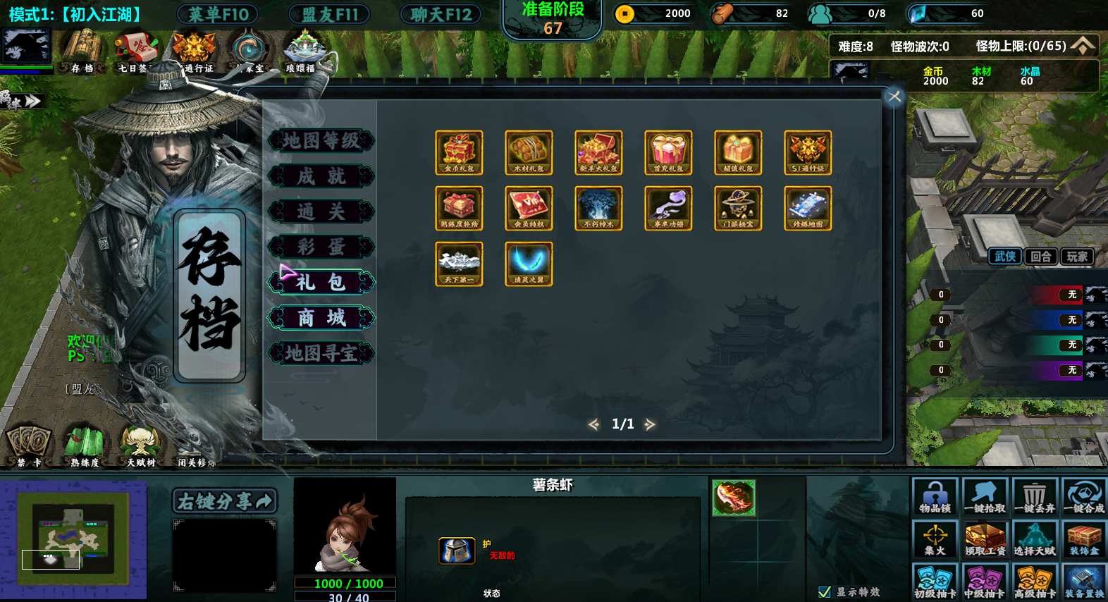 | 技能菜单【光环类技能】 | 自动化菜单【自动加钱木,提升英雄三围】 |