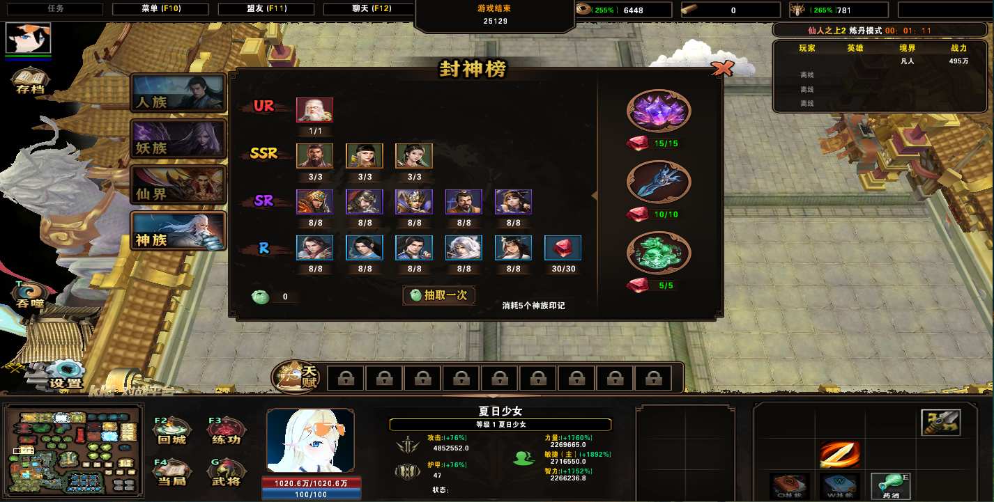 地图名字:仙人之上2 1.0.48地图下载+全商城特权+全存档+隐藏英雄+无CD+指令功能