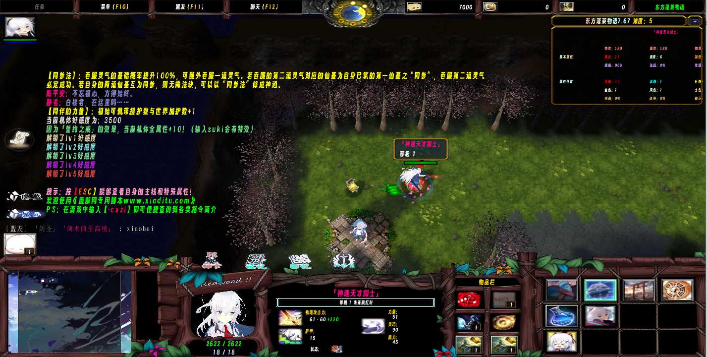 地图名字:蓬莱之旅7.6.7地图下载+全商城特权+全存档+隐藏英雄+无CD+指令功能