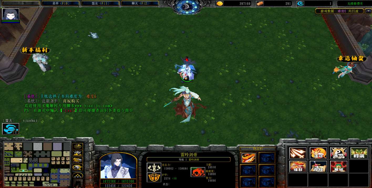| 技能菜单【光环类技能】 | 自动化菜单【自动加钱木,提升英雄三围】 |