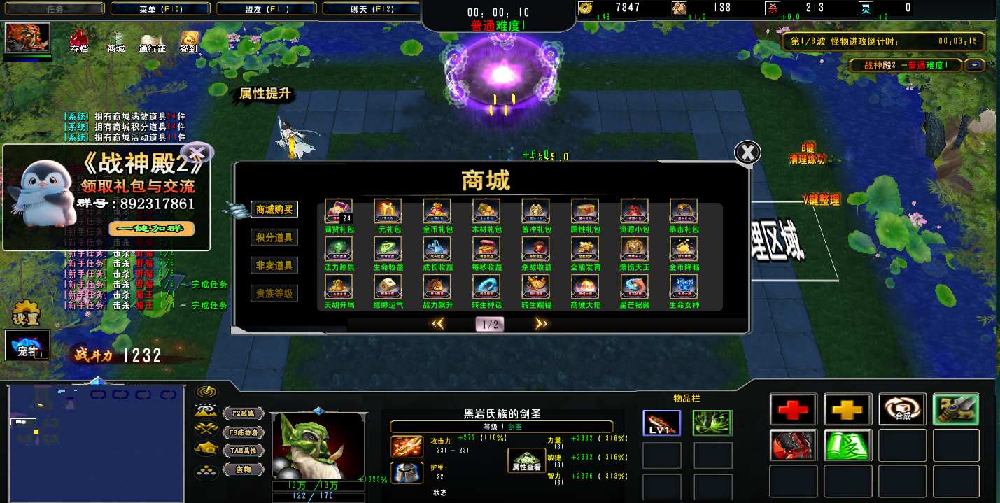 | 技能菜单【光环类技能】 | 自动化菜单【自动加钱木,提升英雄三围】 |