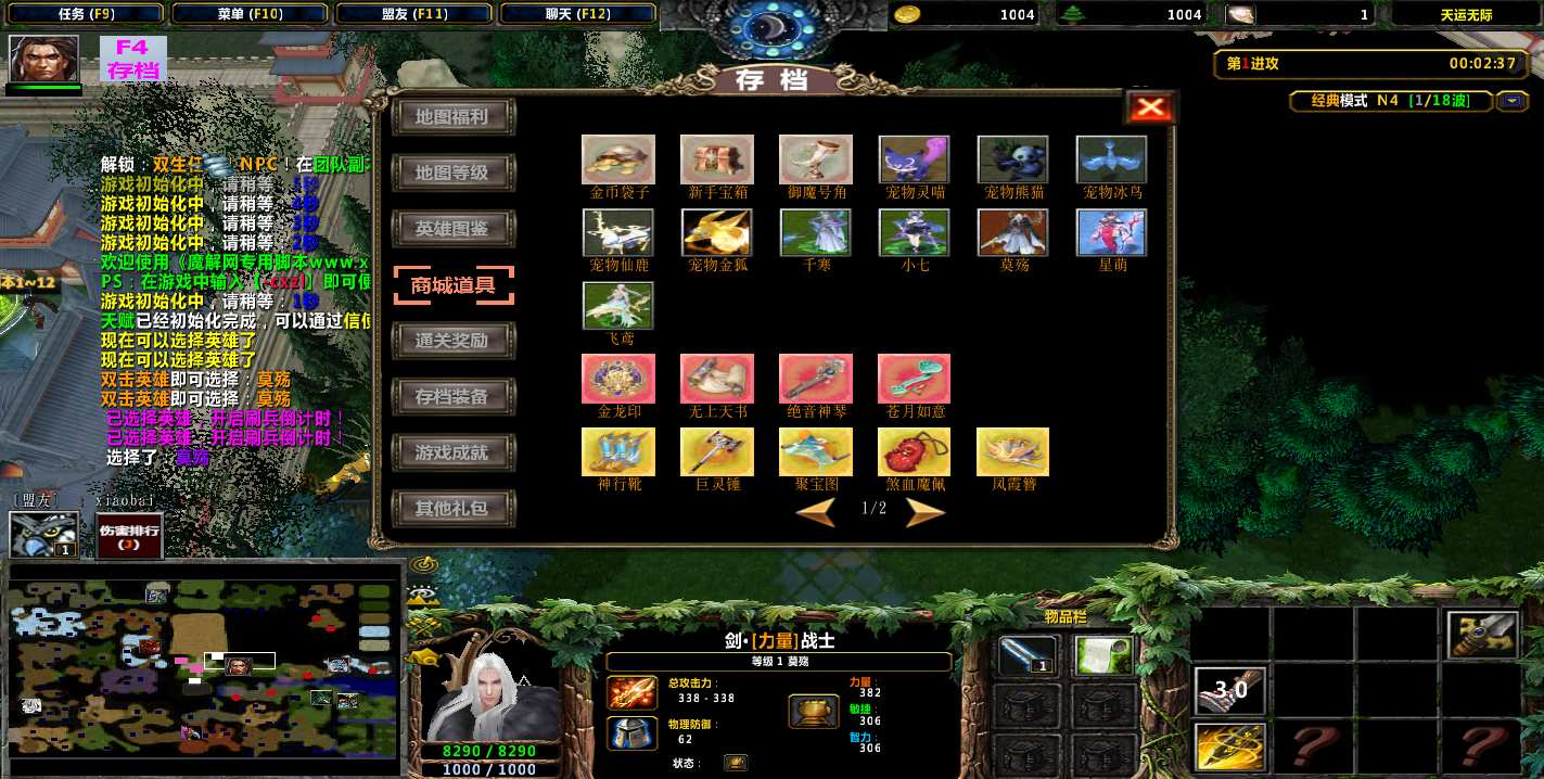 | 技能菜单【光环类技能】 | 自动化菜单【自动加钱木,提升英雄三围】 |