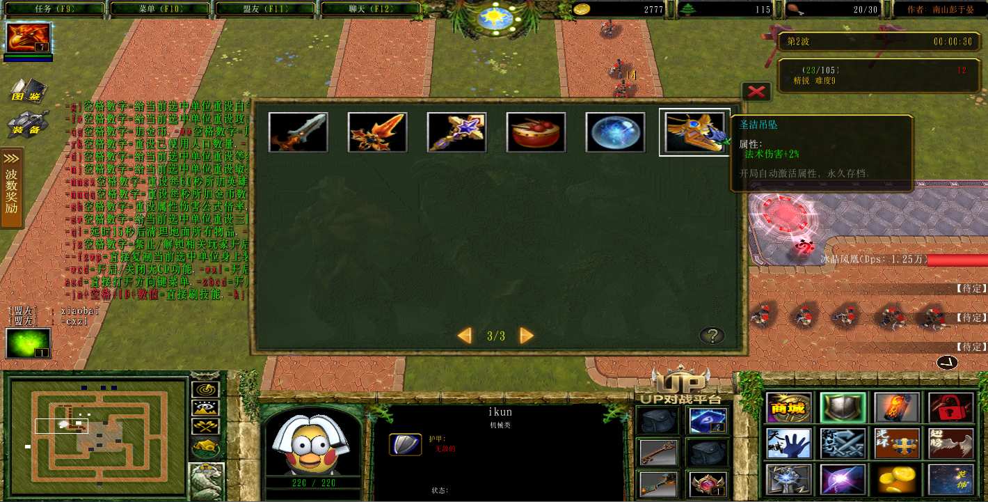 地图名字:刀圈TD17.2.4地图下载+全商城特权+全存档+隐藏英雄+无CD+指令功能