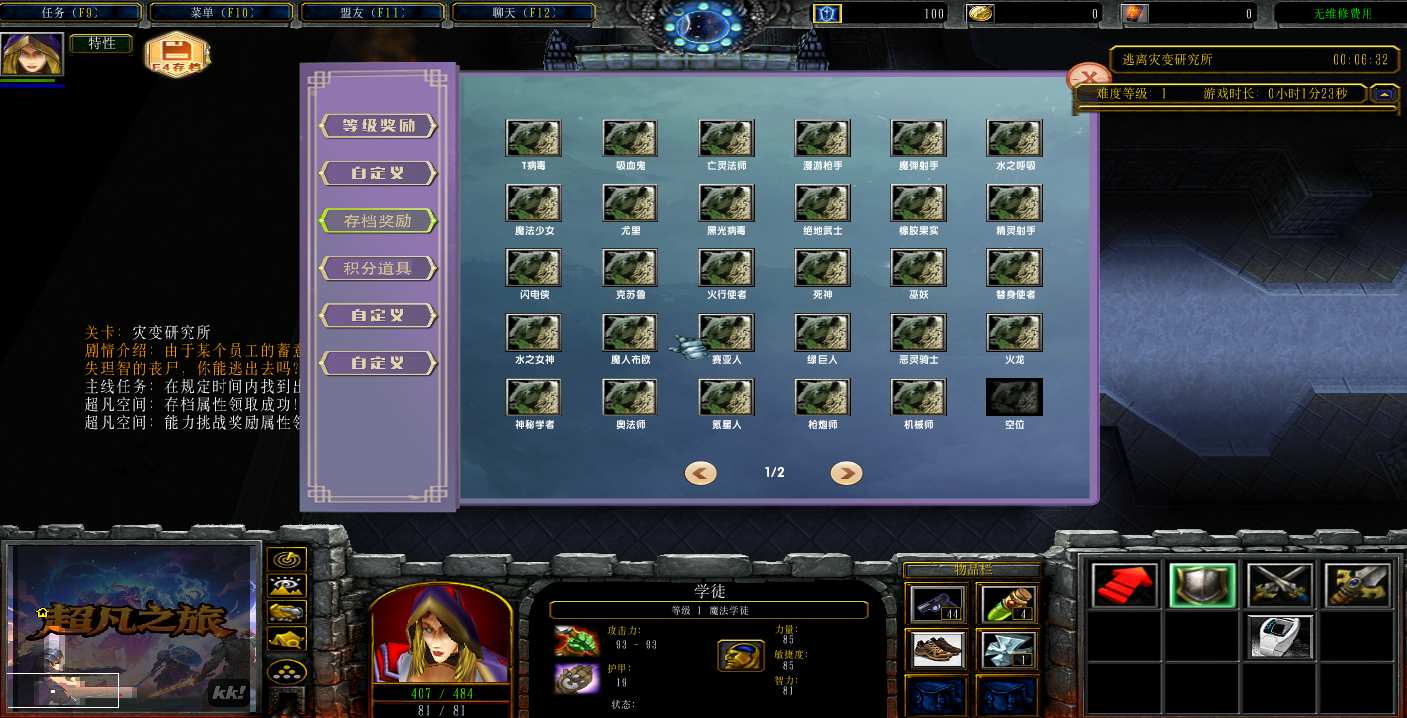 地图名字:超凡之旅1.0.54地图下载+全商城特权+全存档+隐藏英雄+无CD+指令功能