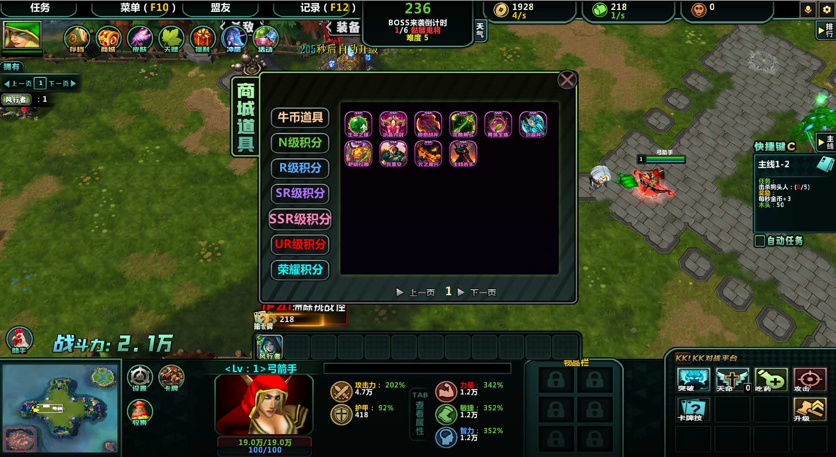 | 技能菜单【光环类技能】 | 自动化菜单【自动加钱木,提升英雄三围】 |