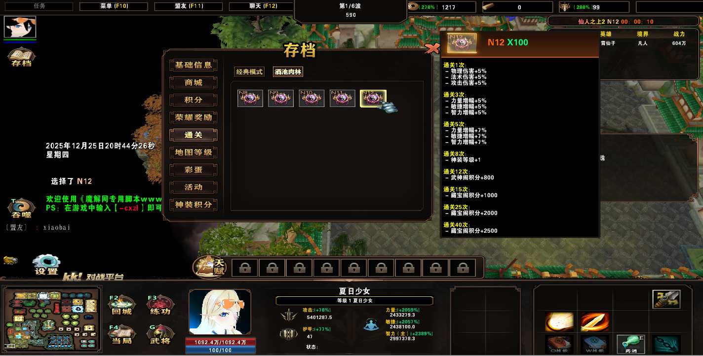 地图名字:仙人之上2 1.0.58地图下载+全商城特权+全存档+隐藏英雄+无CD+指令功能