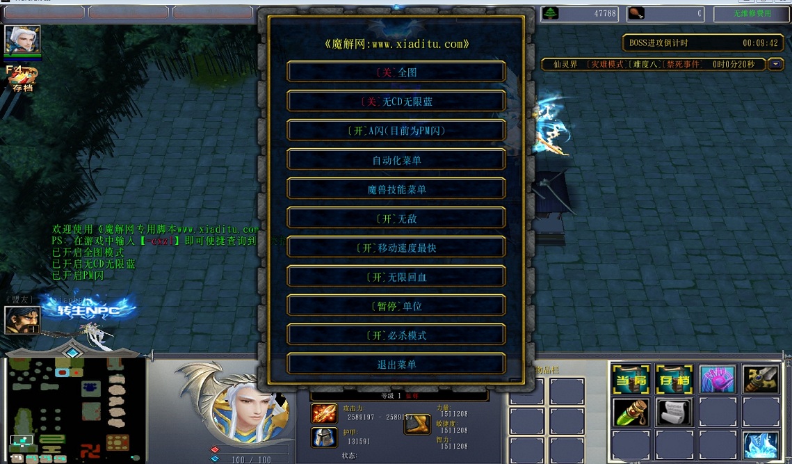 | 开启/关闭 移动速度最快 | 开启/关闭 无限回血 |